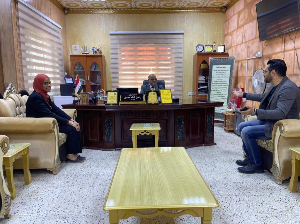 The staff of the Department of the Social Diversity Unit, Wafaa Shaker Ibrahim, director of the unit, and Dr. Sarmad Ghazi Al-Shawi, deputy director of the unit, met with the Dean of the College of Veterinary Medicine, Dr. Rahman Kazem Mohsen, for the purpose of starting a cooperation between the two parties